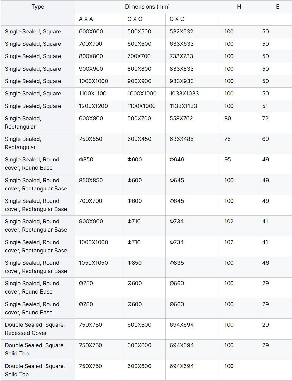 Load capacity:A15,B125,C250,D400,E600,F900